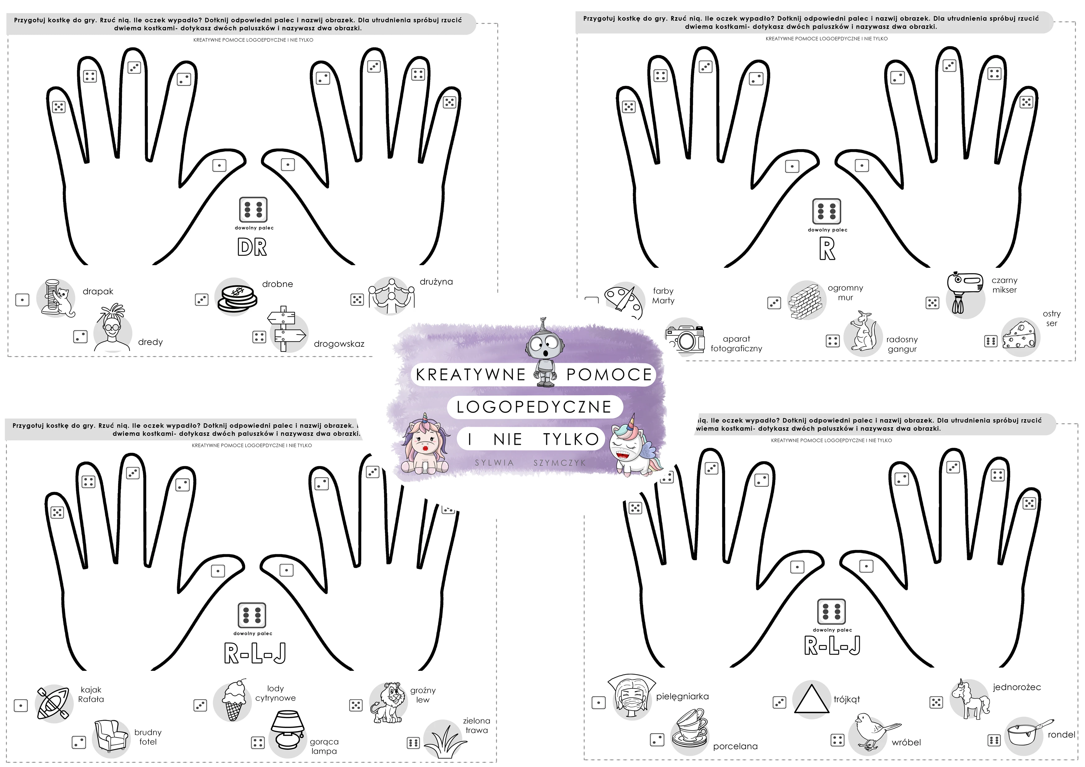 DŁONIE- ZABAWA Z KOSTKAMI, GŁOSKA R I JEJ RÓŻNICOWANIE