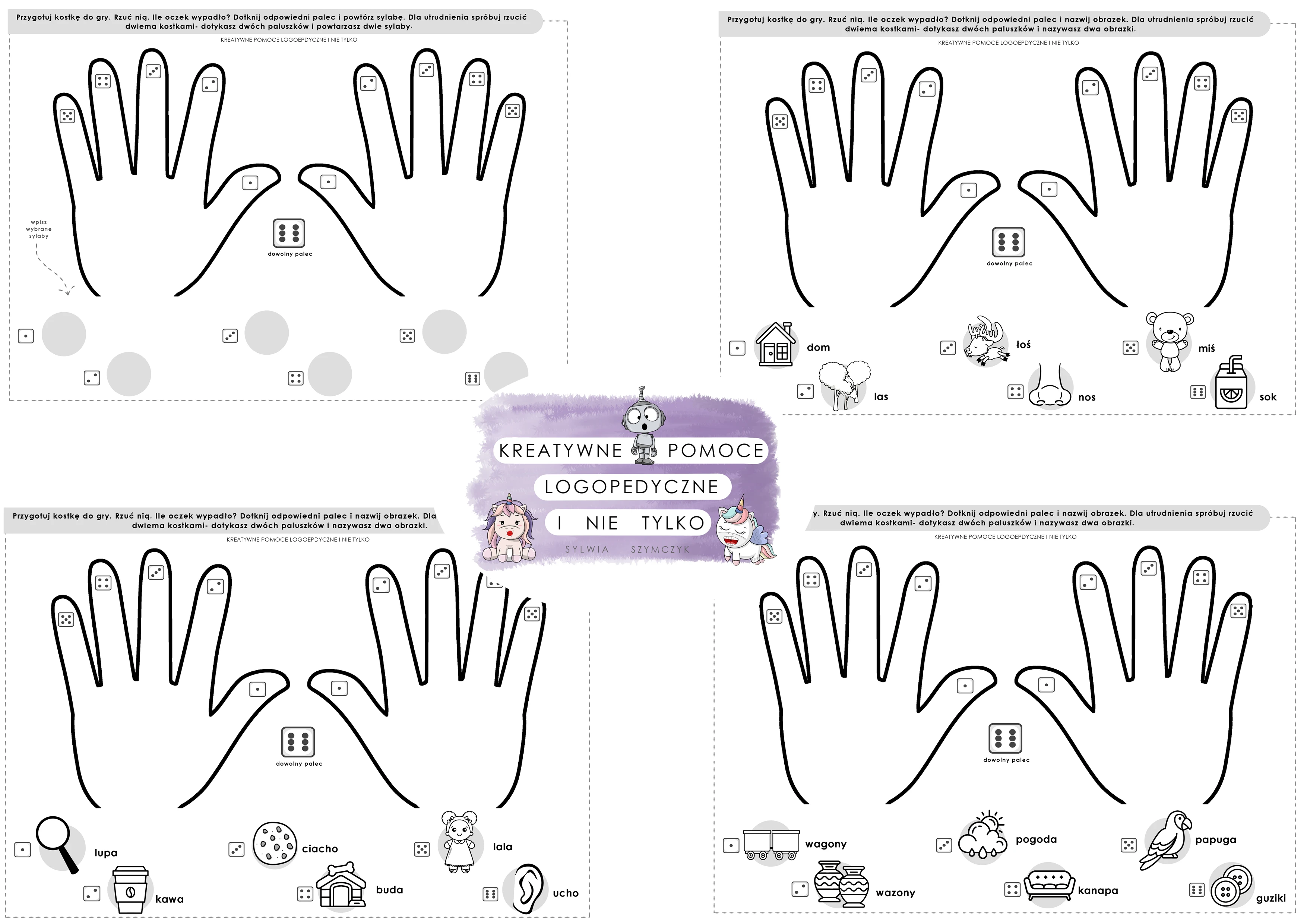 DŁONIE- ZABAWA Z KOSTKAMI, PROSTE SŁOWA
