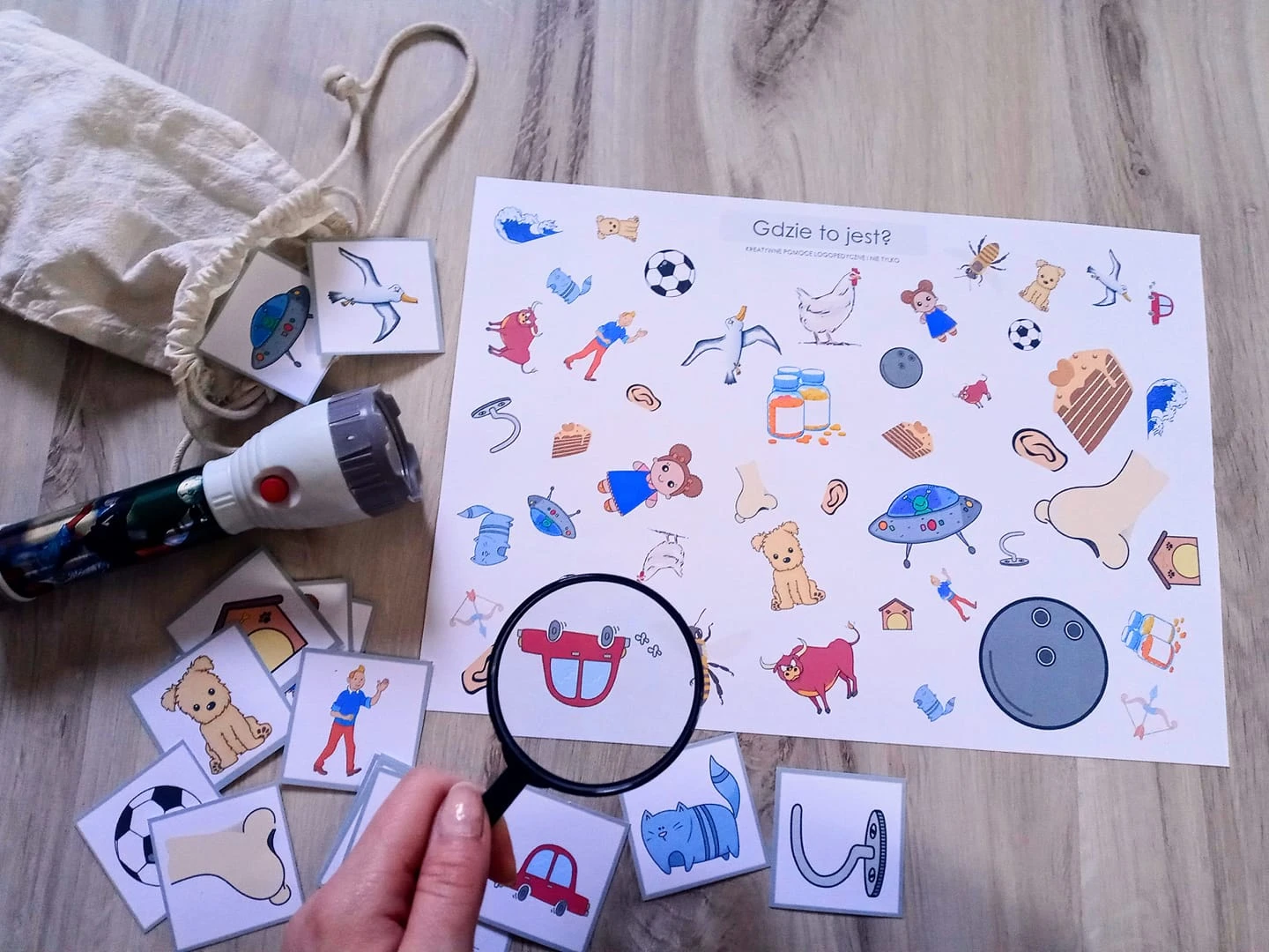 Dodatkowo doskonalimy słownictwo: "Tu jest ...", "Ja widzę...", "Ja szukam ..." itp.