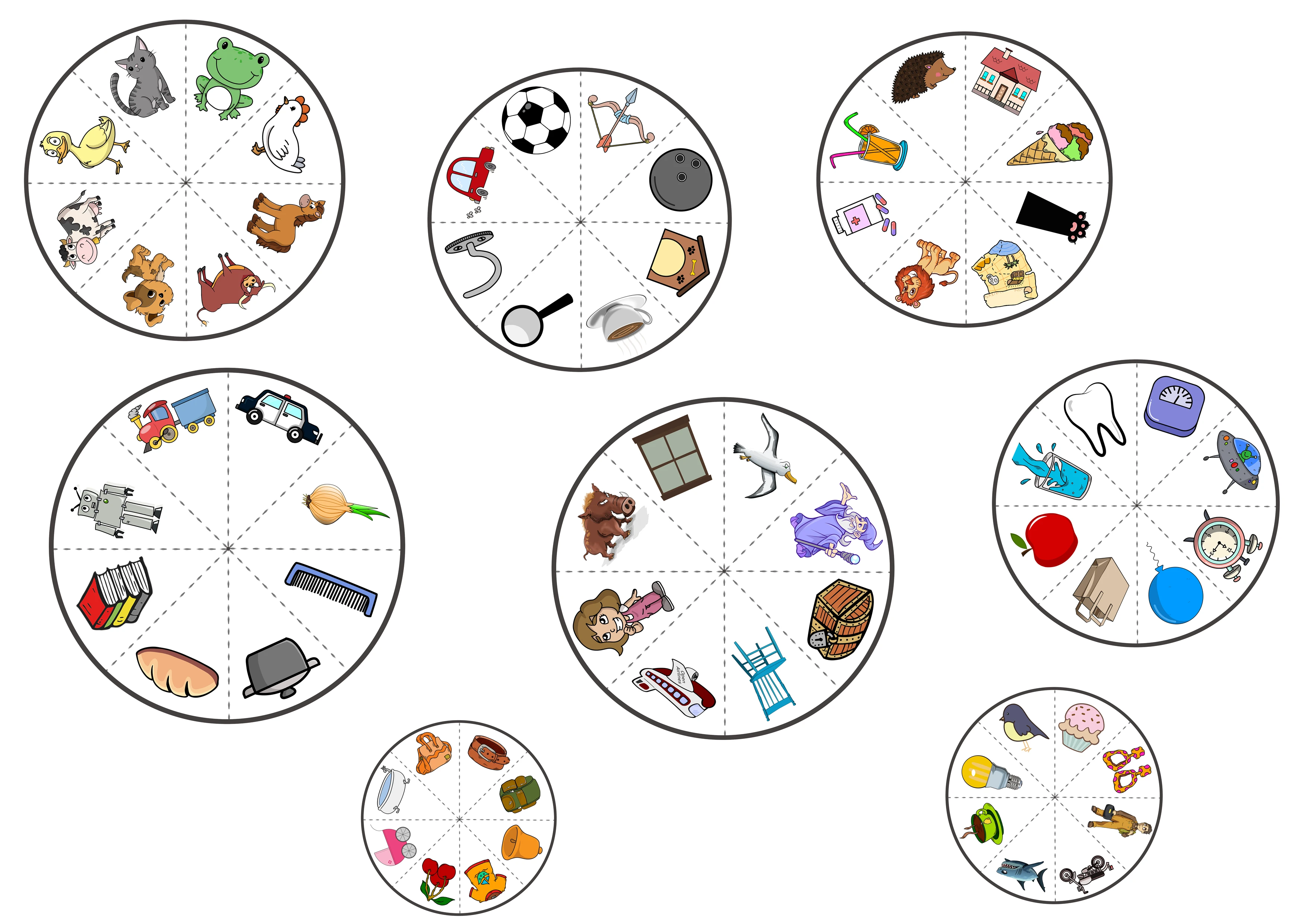 - 30 kół z obrazkami (na każdym 8 obrazków)