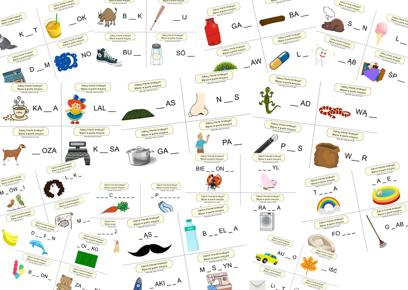 - Zadania należy rozciąć po przerywanej linii. Warto zalaminować i wykorzystać mazaki suchościerlane.