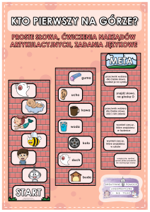 KTO PIERWSZY NA GÓRZE? ĆWICZENIA NARZĄDÓW ARTYKULACYJNYCH, PROSTE SŁOWA, ZADANIA JĘZYKOWE