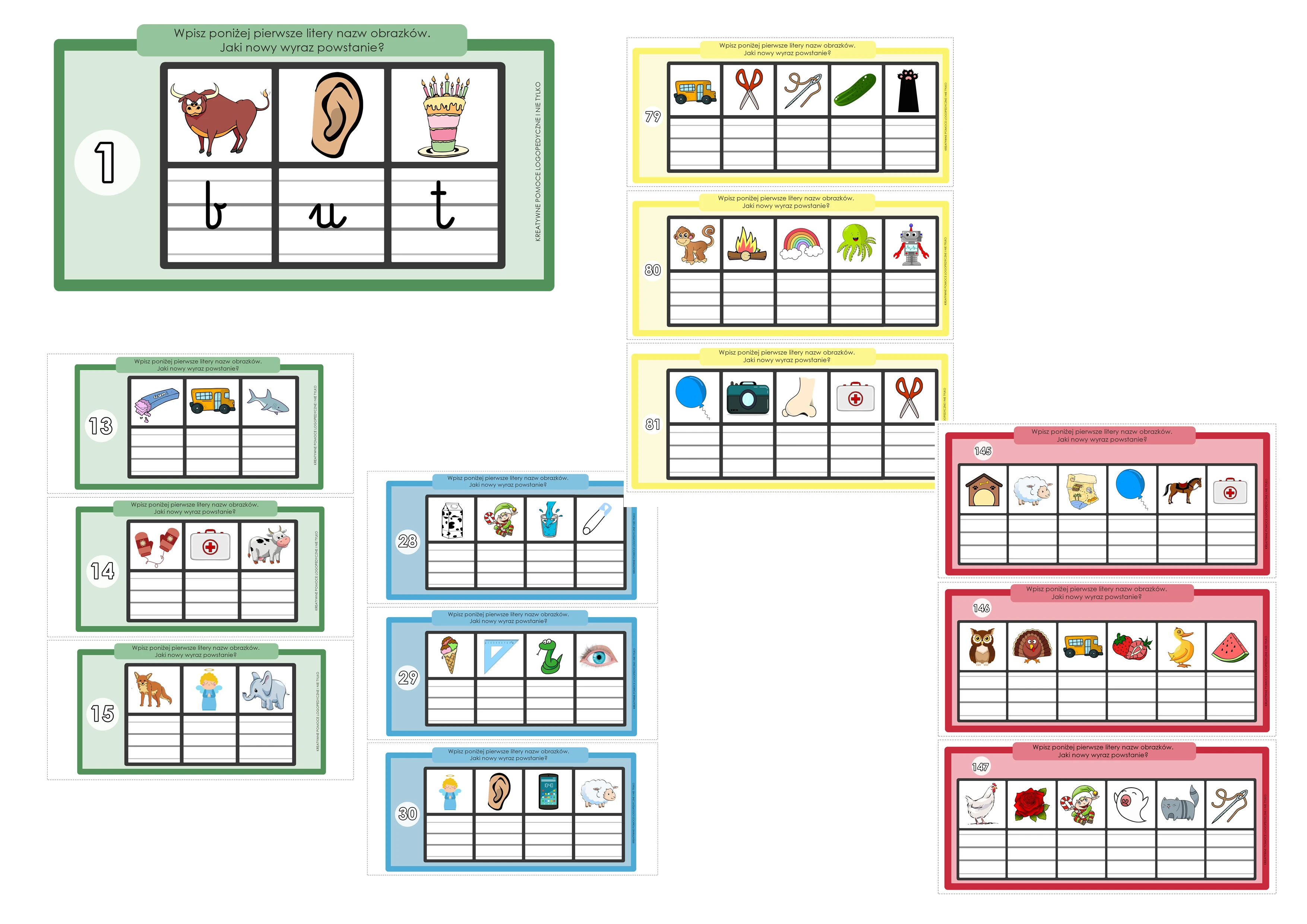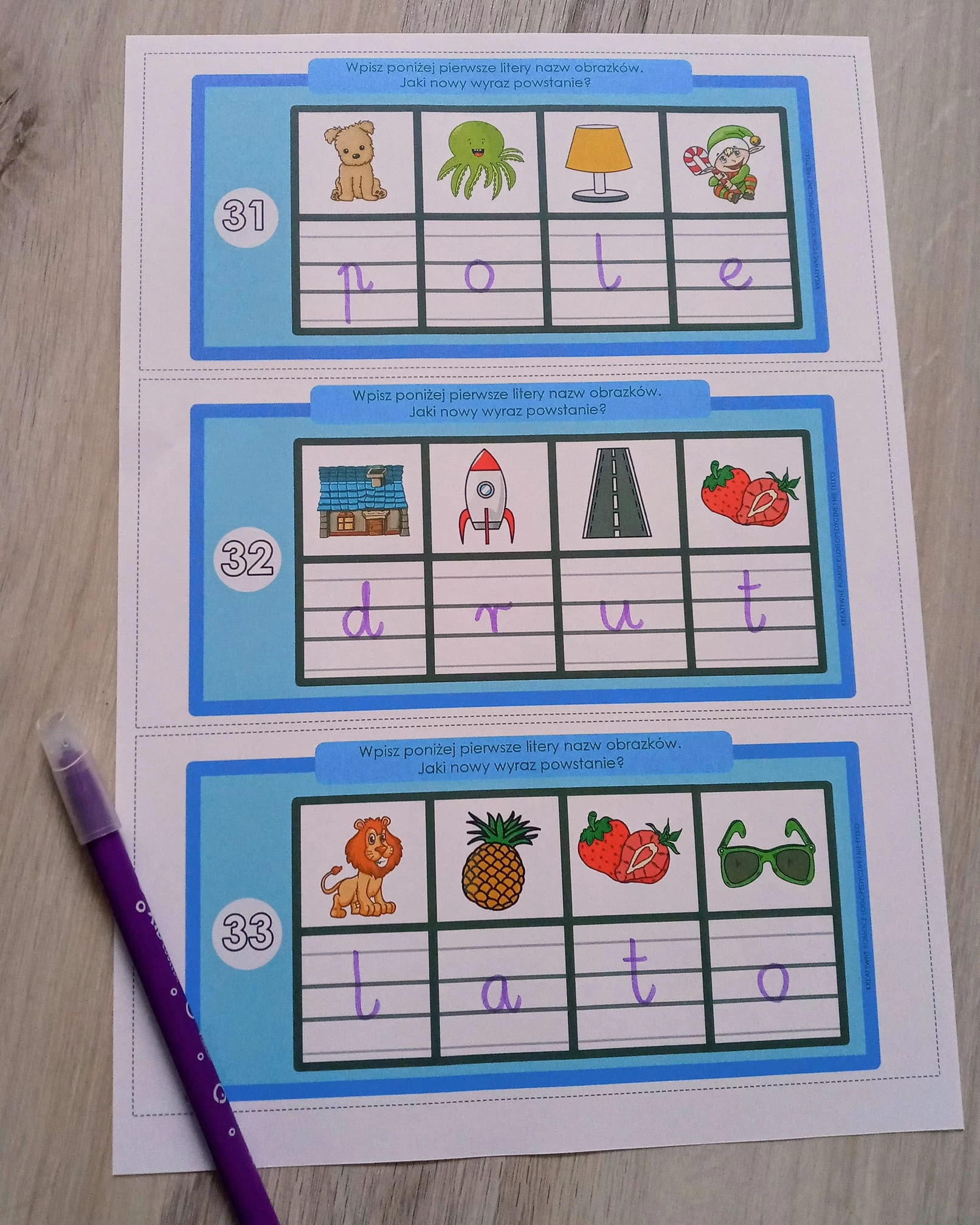 Przydadzą się do rozwijania umiejętności czytania, pisania oraz słuchu mownego (wyodrębnianie pierwszej głoski).