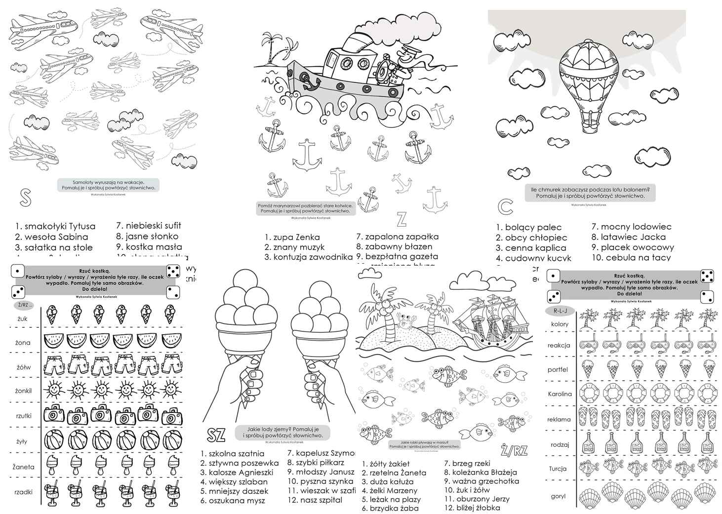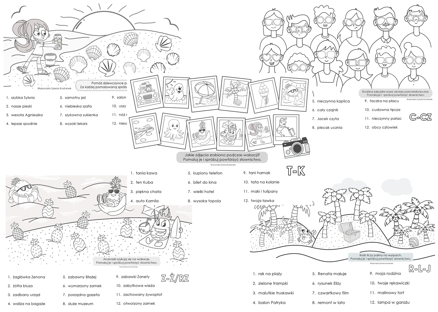 Paka w temacie lata, która zawiera karty do utrwalania głosek.