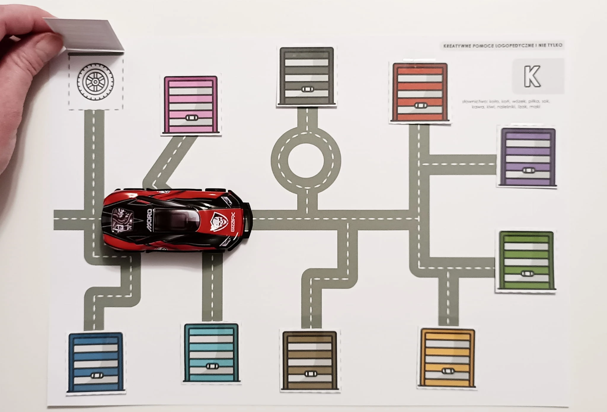 Otwieramy garaże to zabawa dla fanów motoryzacji. Świetnie sprawdzi się do utrwalania materiału na zajęciach oraz w domu.