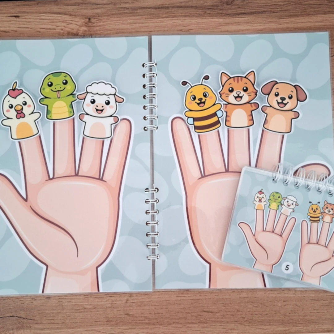 W książeczce znajdziesz urocze pacynki zwierzątek, które zakładamy na palce i… zaczyna się edukacja w przyjemnej formie! Dołączone 16 kart ze wzorami sprawią, że pomysły nigdy się nie skończą – można układać, naśladować, wymyślać własne historie i ćwiczyć spostrzegawczość.