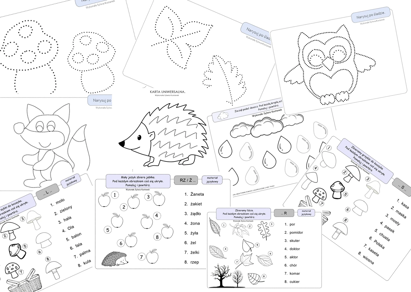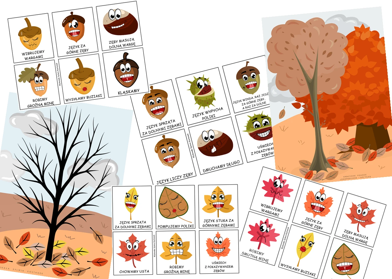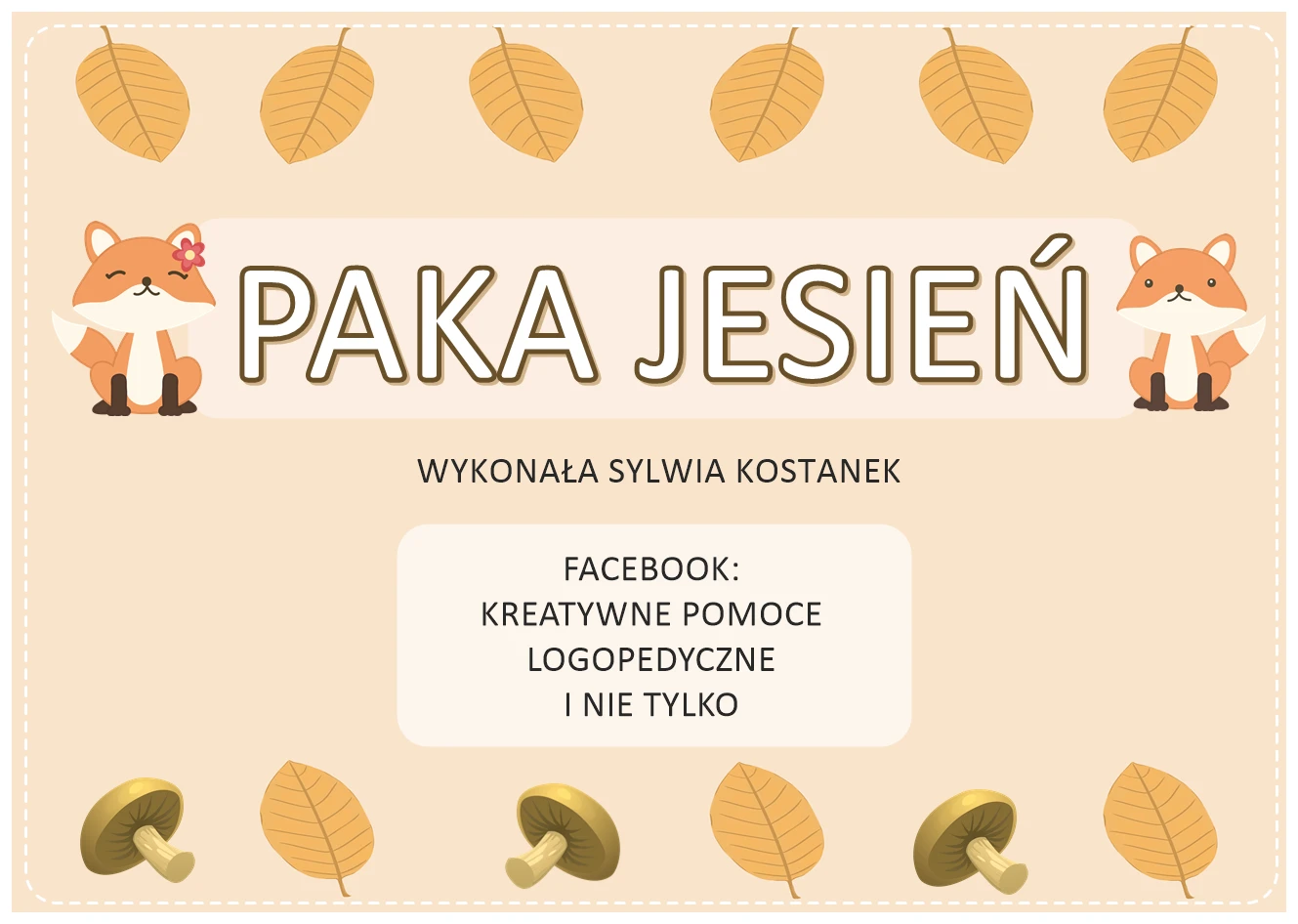 Paka JESIEŃ jest tak uniwersalna, jak mało która. Zachwycają piękne ilustracje (są też ilustracje do jesiennej gazetki!), bardzo bogaty materiał wyrazowo-obrazkowy do ćwiczeń ogólnorozwojowych i artykulacyjnych, w tym karty do utrwalania głosek i przepiękne karty do ćwiczeń usprawniających aparat mowy. Są także karty do dowolnego wypełnienia. Myślę, że paka świetnie się sprawdzi jako narzędzie w terapii dyslalii i ORM.