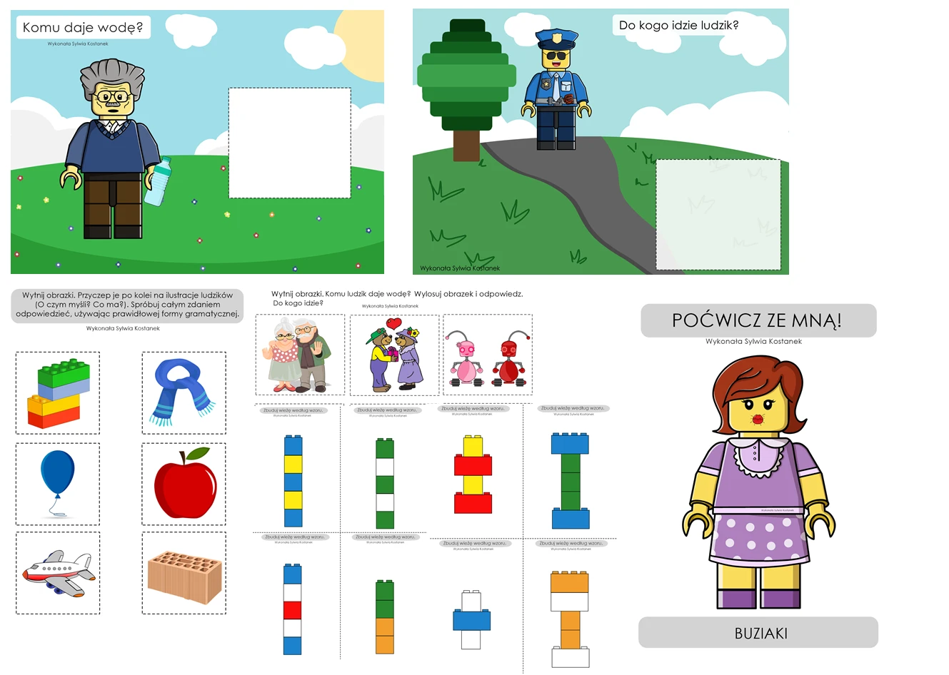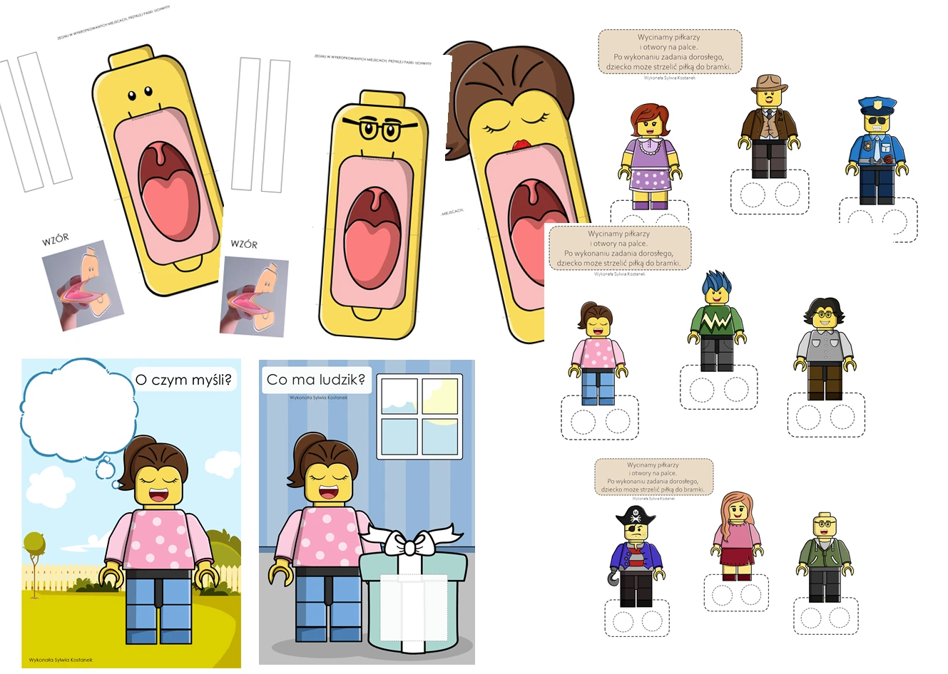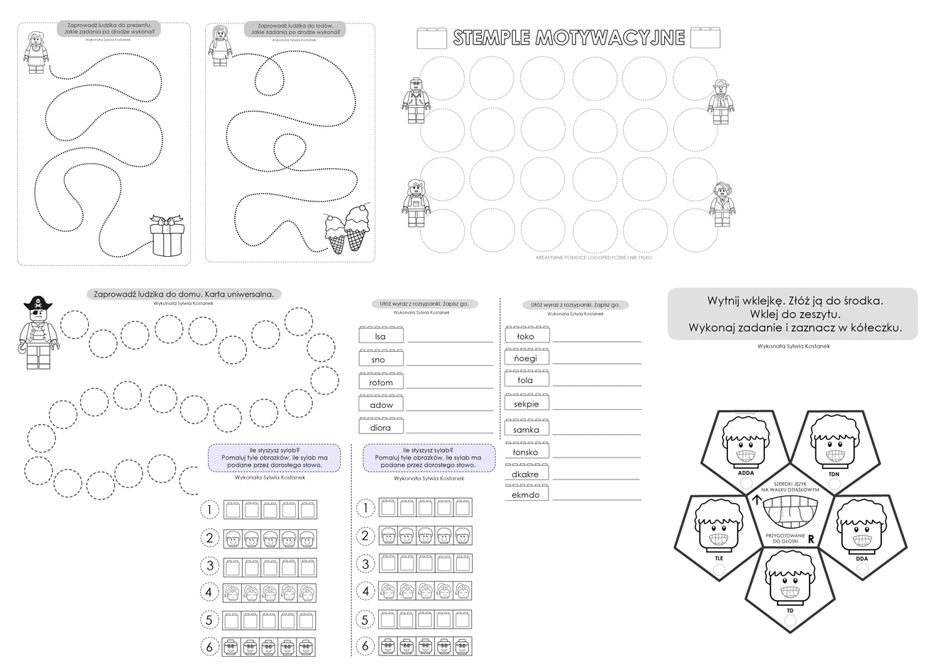 Paka LEGO to uniwersalna pomoc warta swojej ceny. Jestem zachwycona tą ilością materiału do utrwalania i różnicowania głosek, ale przede wszystkim kolorowymi ludzikami do przeróżnych ćwiczeń, m.in. artykulacyjnych, gramatycznych, wklejkami do konkretnego i dowolnego wykorzystania oraz wieloma innymi zabawami i propozycjami ćwiczeń - długo by mówić. Naprawdę p. Sylwia nieźle napracowała się przy tej pace, a ja chyba przy oglądaniu żadnej innej pomocy nie wypowiedziałam tyle razy "wow!", co tym razem. Gratuluję świetnej pomocy i polecam wszystkim, bo każdy znajdzie tu coś dla siebie.
