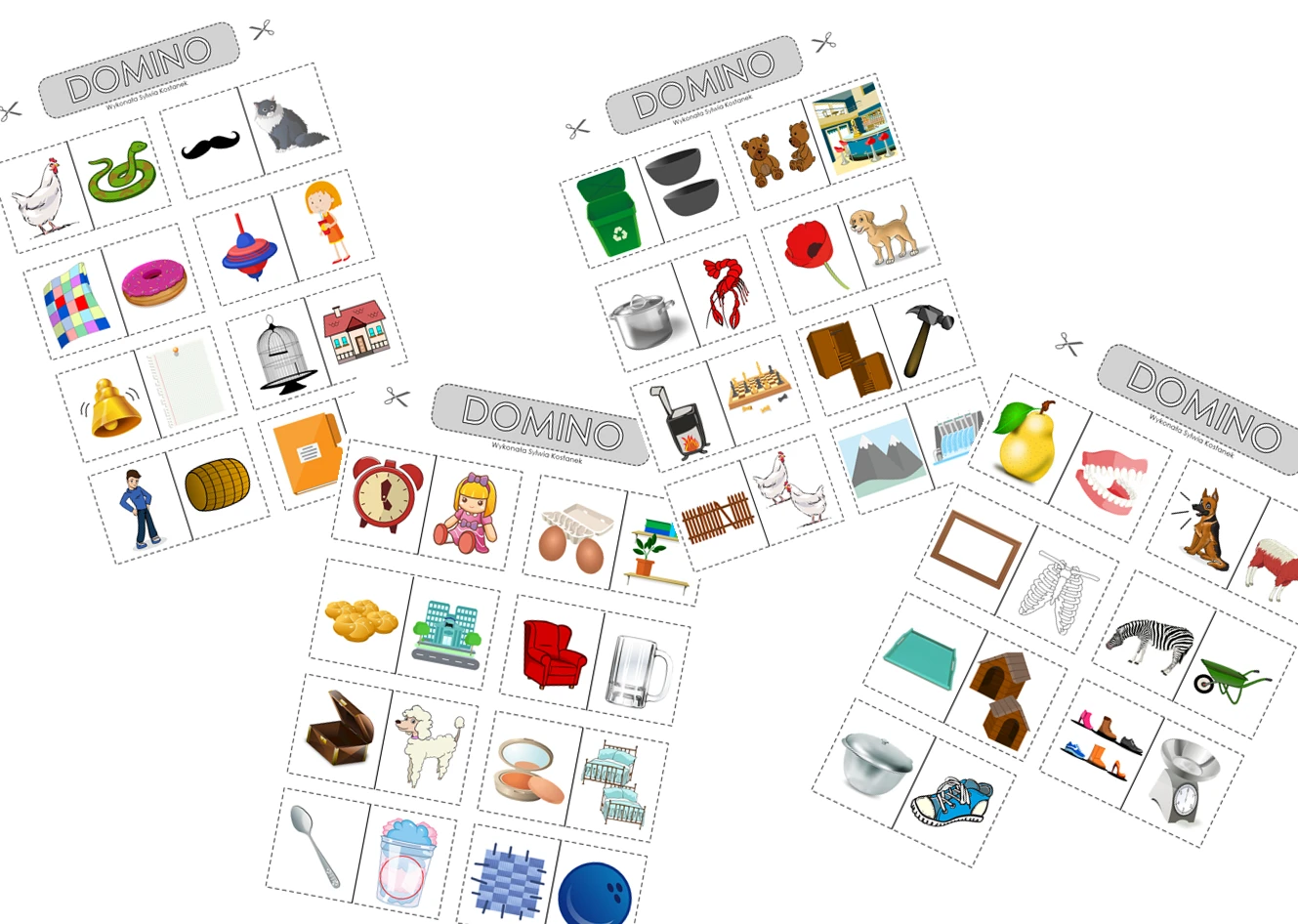DOMINO z paronimami- dopasuj obrazki tak, aby ich nazwy podobnie brzmiały