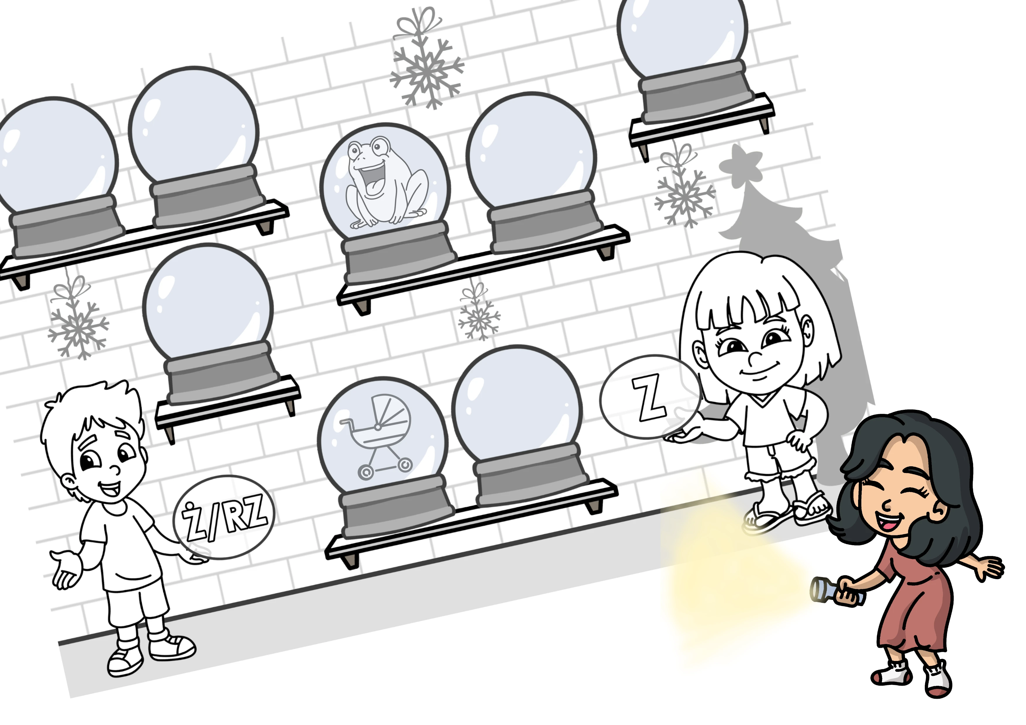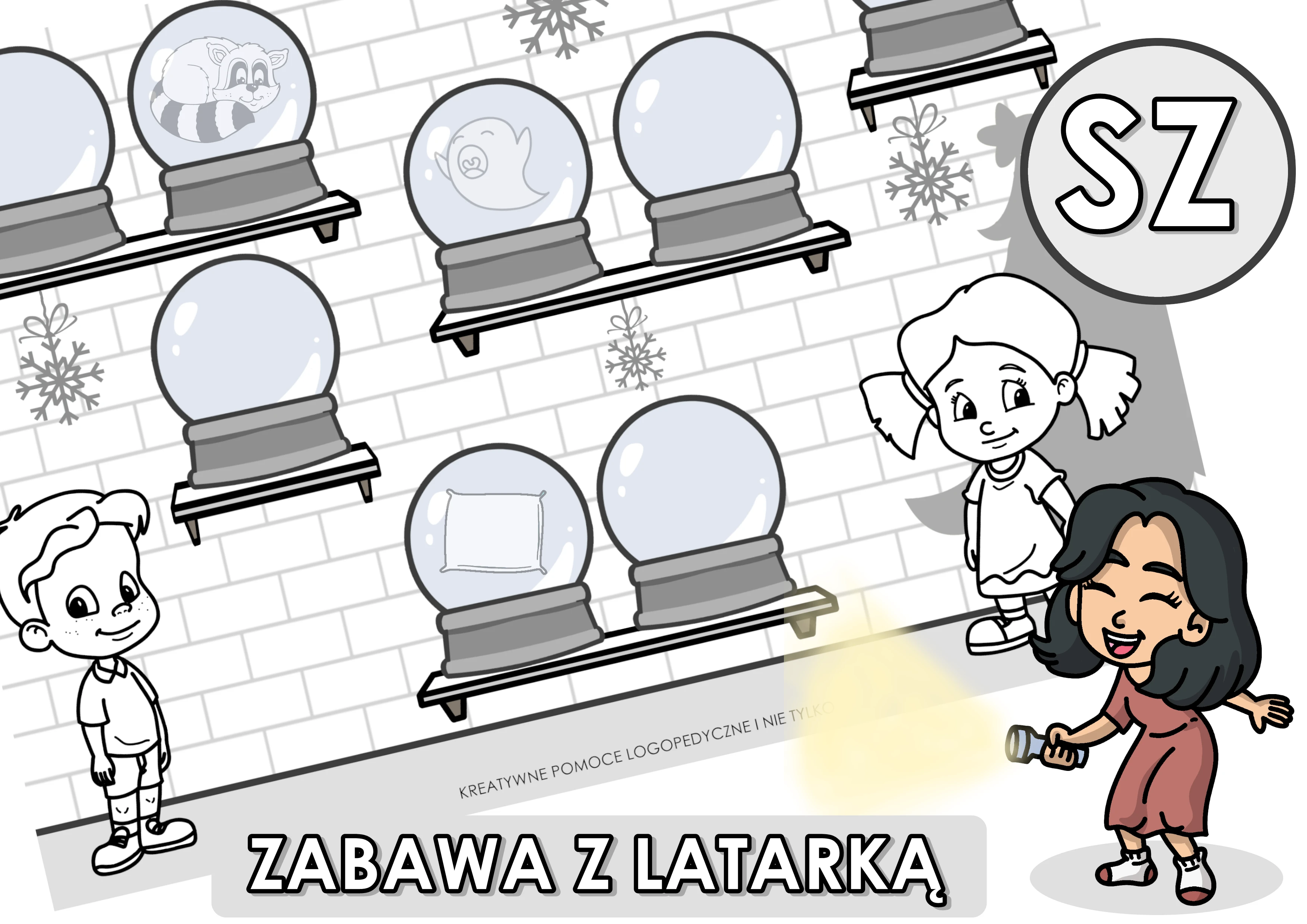 Zimowa propozycja do utrwalania trudnych głosek w formie zabawy z latarką :)