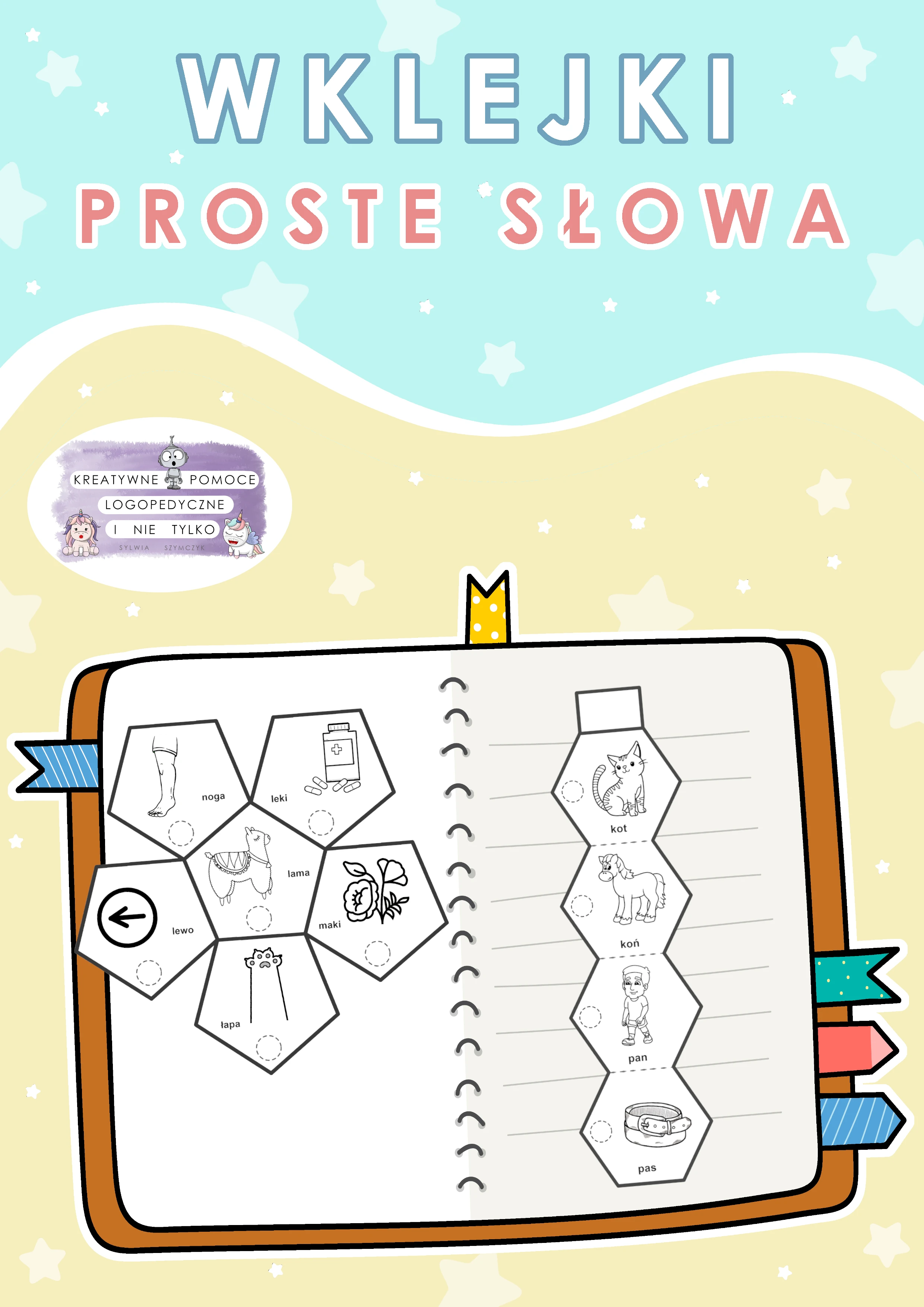Wklejki to świetny pomysł na utrwalanie prostych wyrazów. W zestawie znajdują się 3 rodzaje czarno-białych wklejek (łącznie 50 stron).