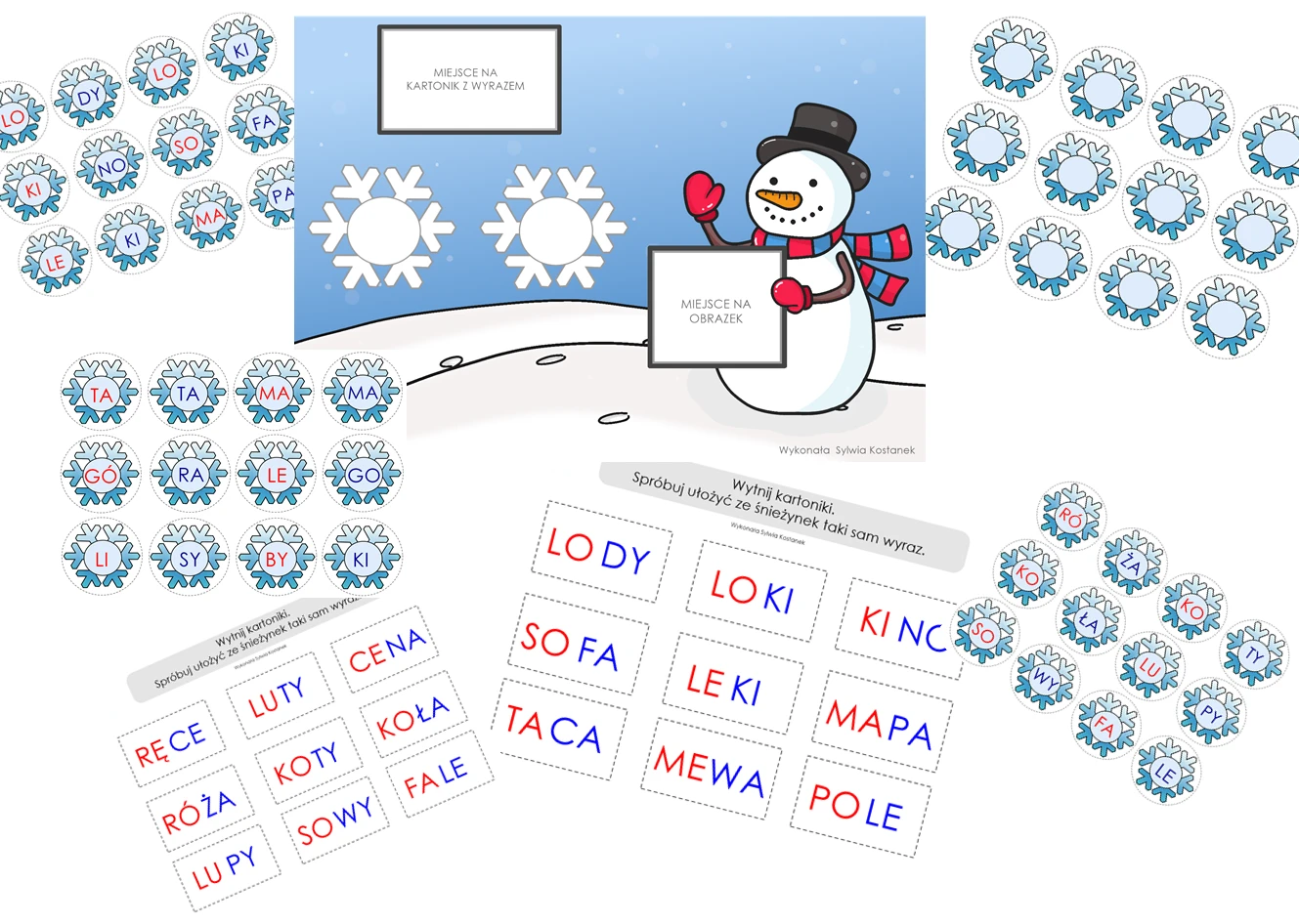 Zimowe czytanie to zestaw kart, które w kreatywny sposób wspomogą naukę czytania.