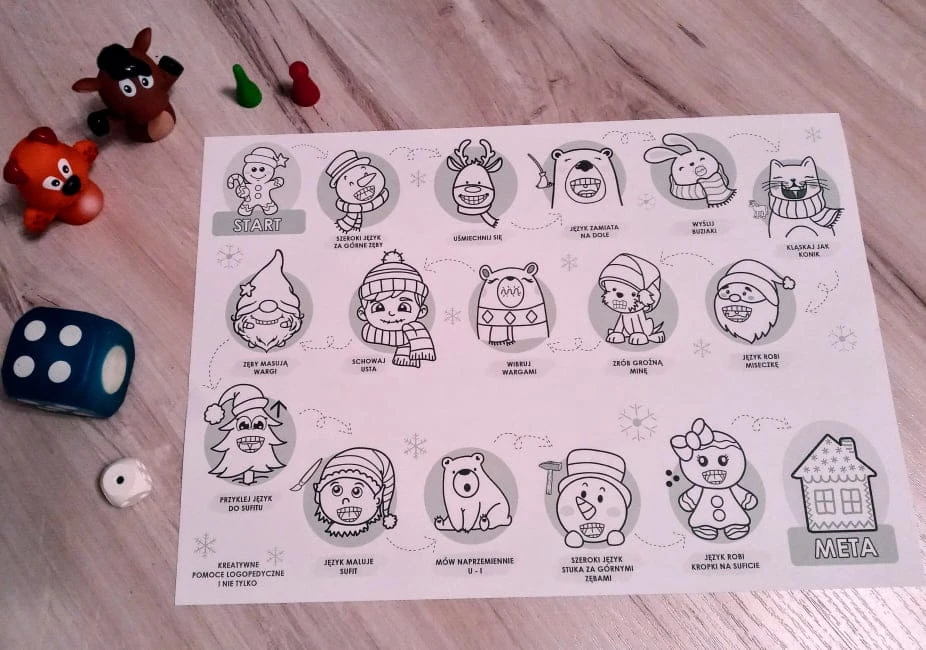 Jako DARMOWY DODATEK została dołączona GRA PLANSZOWA z ćwiczeniami warg i języka :)
