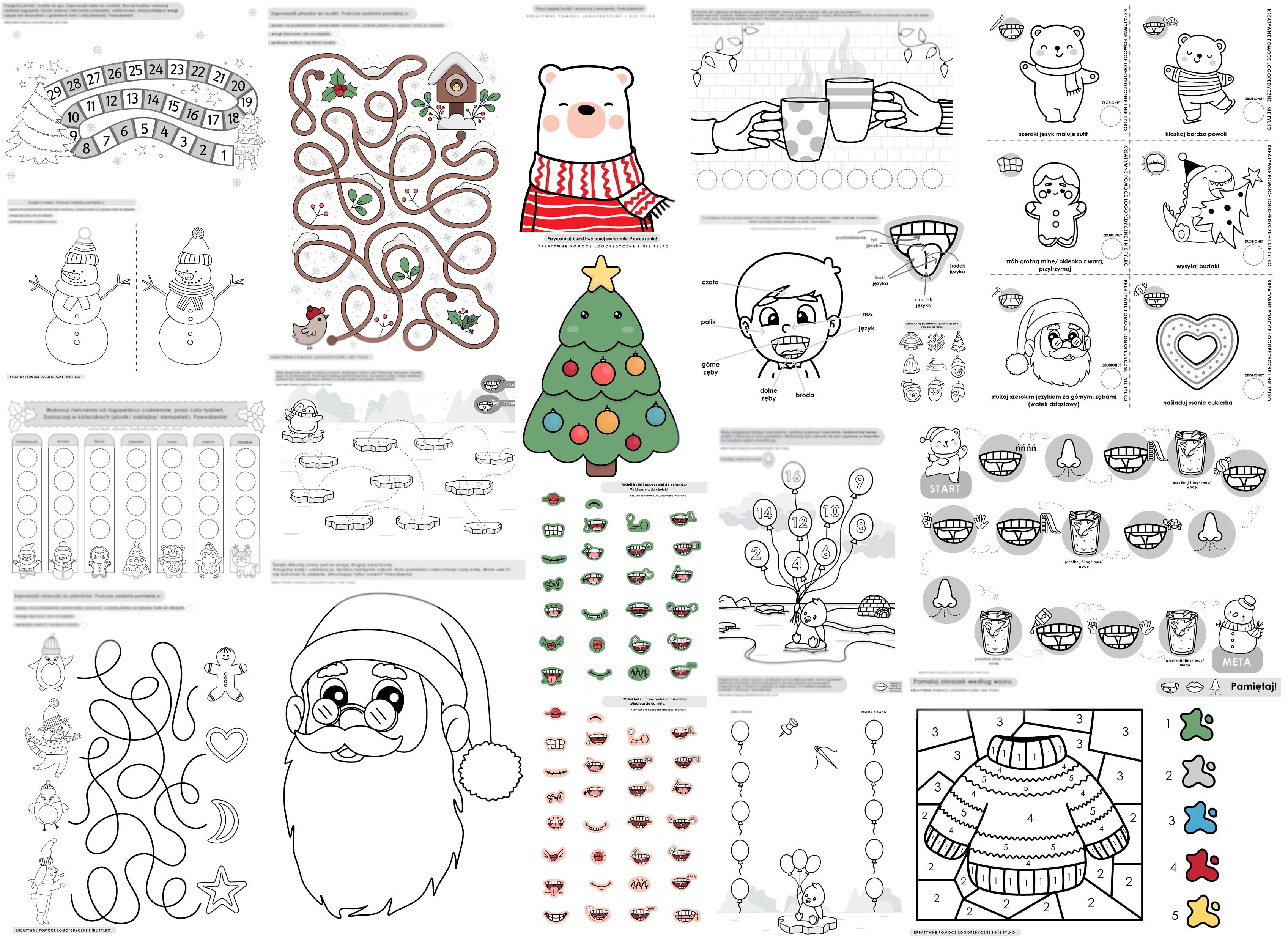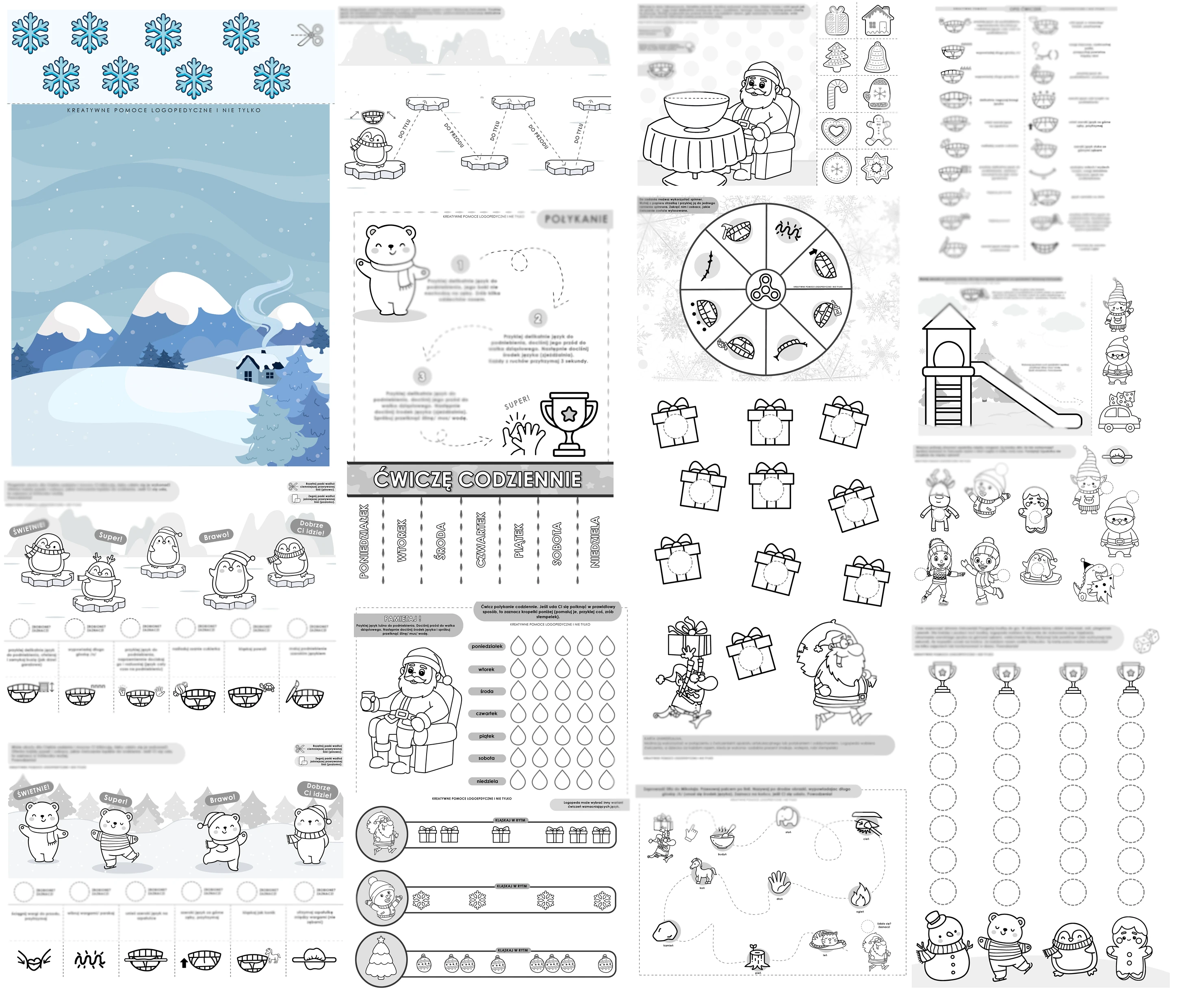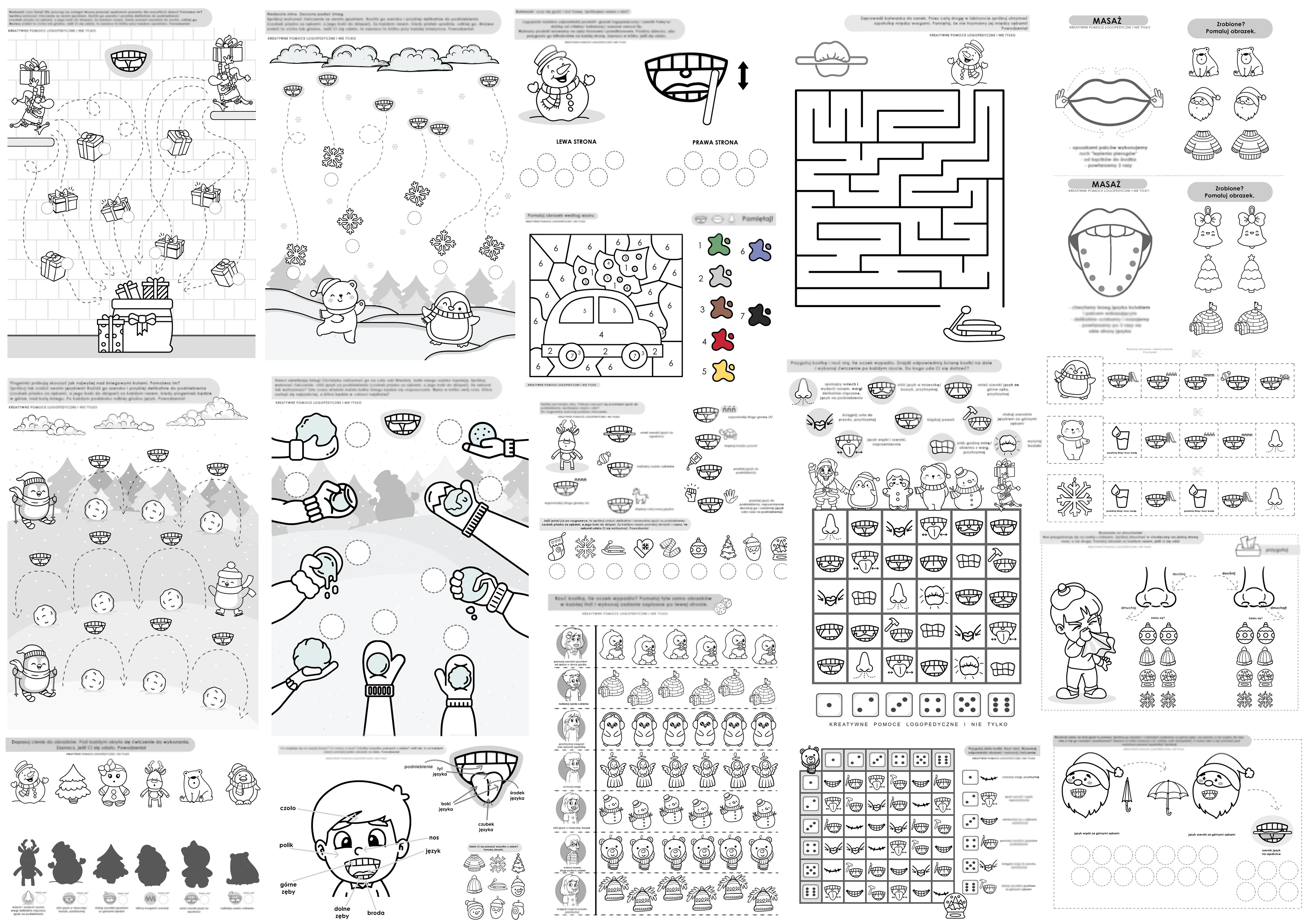 ZIMOWE MIO ZABAWY to zestaw kreatywnych kart i zabaw do ćwiczeń narządów artykulacyjnych, prawidłowego oddychania, gryzienia, żucia oraz połykania. Dzięki nim można w przyjemny sposób pracować nad ważnymi funkcjami.